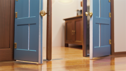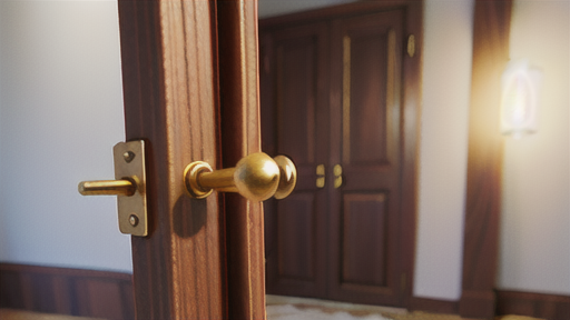 開き戸とは、ドアの最も一般的なタイプで、丁番によって枠に取り付けられています。ドアノブやハンドルをひねることで、ドアは回転運動によって開閉します。回転軸がドアの側面にあるため、ドアは枠に対して90度まで開くことができます。
