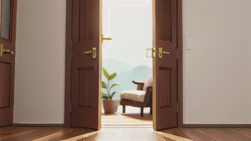 両開きドアの特徴 両開きドアは、2枚の扉が中央でヒンジでつながっていて、左右に開閉できるという特徴があります。この構造により、開口部を大きく取ることができ、開放感や通気性を確保できます。また、どちらからでも出入りできるため、使い勝手が良く、荷物の搬出入にも便利です。さらに、装飾的な効果があり、空間を広く見せることもできます。 -